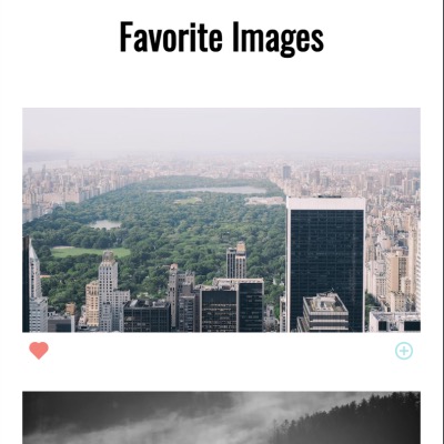 The Favorite Images page also has been small screen optimized for mobile devices. Context and hooks were used to maintain and allow access to state.